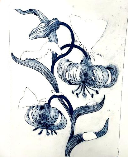 A central part of my artistic practice is devoted to printmaking, especially collagraphy. In this medium, I work freely and intuitively, often drawing inspiration from the botanical etchings of Maria Sibylla Merian from the early 1700s. Rather than replicating her work, I use it as a starting point — a visual score I can jam over, reinterpret, and respond to in my own way.